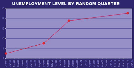 กราฟนี้ดูเป็นเส้นตรงสวยงาม ดูผ่านๆก็คือ จำนวนคนว่างงานเพิ่มขึ้นอย่างคงที่ทุกๆไตรมาส … หรอ?